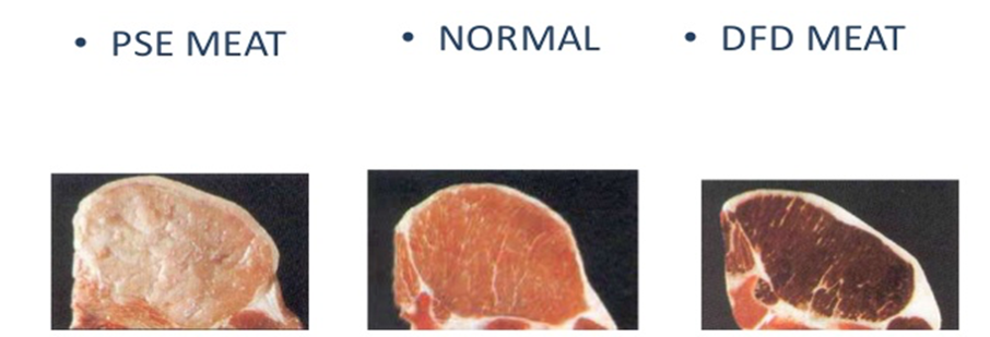 Stresshormonen maken ook extra glucose vrij voor extra energie, gezien stresshormonen eigenlijk zijn bedoeld om uit gevaarlijke situaties te ontsnappen. Deze glucose wordt omgezet naar melkzuur, dat de pH (zuurtegraad) van het bloed verlaagt. Wanneer het dier vlak voor de slacht veel stress ondervindt, wordt er vlak voor de slacht dus veel glucose omgezet naar melkzuur. Hierdoor ontstaat zgn. PSE-vlees (Pale, Soft and Exudative). PSE-vlees is dus bleek en zacht en kenmerkt zich door vochtverlies. Wanneer er een tijdje voor de slacht veel glucose naar melkzuur wordt omgezet en vervolgens wordt afgebroken, dan ontstaat er DFD-vlees (Dark, Firm and Dry). Dit vlees is donker, taai en droog. DFD-vlees ontstaat wanneer het dier bijvoorbeeld nog voor transport veel stress heeft gehad. Beide vleessoorten zijn van slechte kwaliteit en smaken aanzienlijk minder dan gezond vlees.